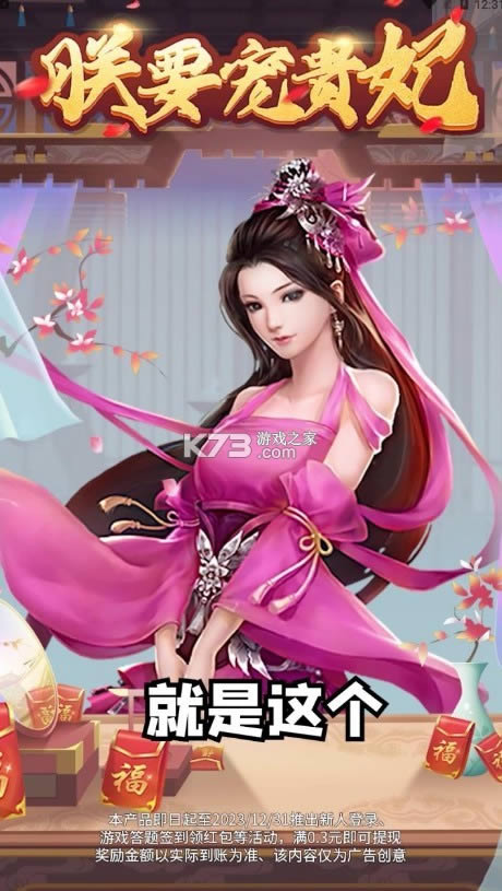 《朕要宠贵妃》红包游戏来袭,是一款模拟当皇帝能够选更多妃子的手游了,能够解锁更多的角色,可以和爱妃体验不同的活动,比如拜见太后、御花园扑蝴蝶等等,让你感受成为皇帝的至高快感。
