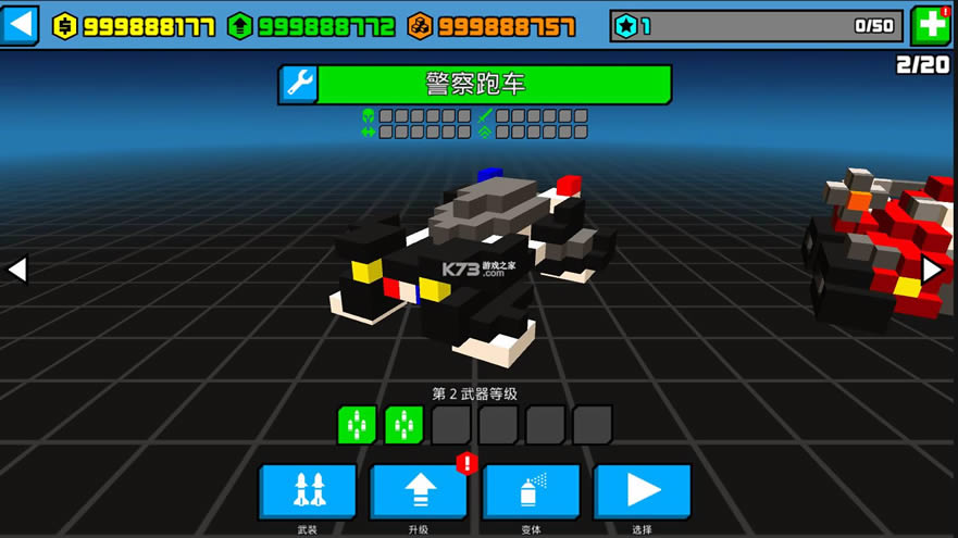 一款非常值得体验的集赛车竞速,动作射击为一体的手机游戏,游戏的背景设在像素世界中的暴徒占领了飞船高速公路!玩家需要快建造自己的自定义飞船,使用机枪、激光枪和火箭为飞船全副武装,然后开上街头,在抓捕行动中大获全胜!而且进入其中我们能看到像素效果非常“严重”的战车,除了堆叠在一起的像素方块在大体轮廓上可以看出战车的模样以外,基本看不清任何细节上的东西。游戏采用了3D引擎制作,虽然我们的战是夸张的像素方块效果,但是背景地图和道路却十分清晰,这种主次颠倒的画面表现方式更容易给玩家们带来一定的视觉冲击。同时,极速飞船抓捕行动破解版的操作比较简单,玩家们手指按住屏幕左边即可控制车辆向左移动,同理按住右边就会向右移动,以此来瞄准前方的车辆和躲避各种危险状况。当然,在游戏中玩家不仅仅要瞄准前方的敌人进行攻击,还要躲避敌人战车破碎的残骸,若是被撞到就会损坏自己的车身了。而且本作在战斗效果上有些类似乐高系列的效果!非常不错!