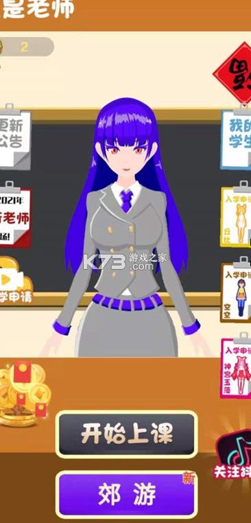 玩家在游戏中以老师的形象出现,教育学生,给学生们上课,批改作业等。《我是老师》中有很多有趣的课程,比如彩妆课,老师教导学生进行化妆,并对学生的化妆成绩进行打分;除此之外,还有好玩的郊游活动,可以带领学生们去动物园观看精彩的动物表演,这是一个丰富的校园模拟游戏,快来试试你能不能当老师吧!