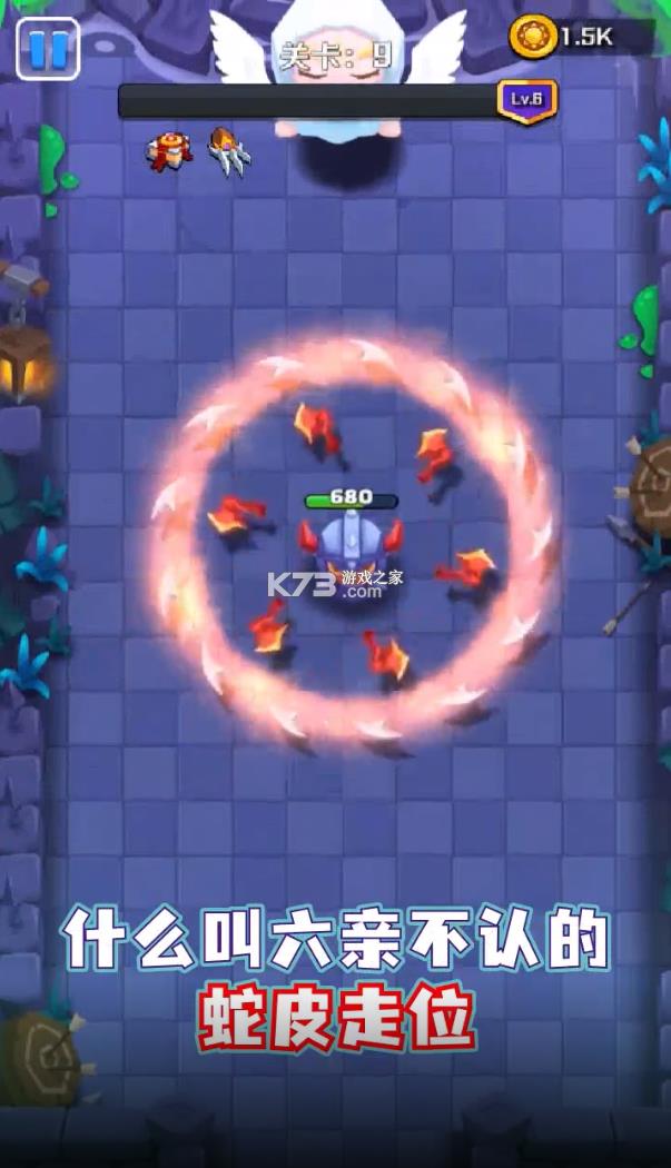 游戏中通过不断拾取场景中的刀具来增加环绕在周围的武器数量保护自己,
