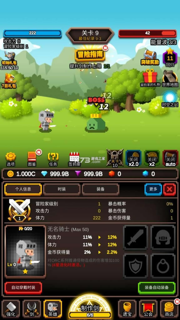 《无尽剑道破解版》是一款放置挂机类型的冒险手游,游戏采用了非常经典的像素风格的游戏画面,而且游戏已经进行了破解,进入游戏即可看到无限的游戏货币,玩家可以随意的强化武器或是技能。