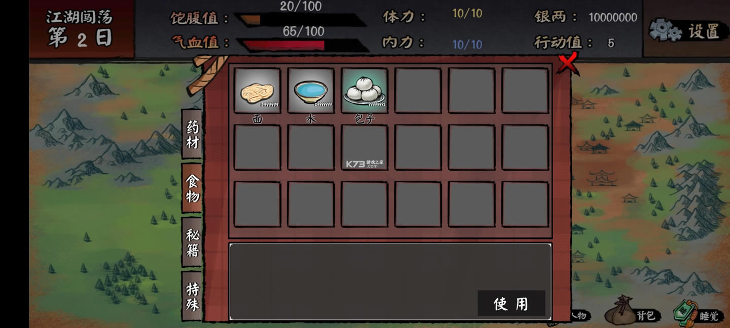 各种资源,包括药品、食物、秘籍、特性,这些都是玩家你行走江湖的必需品,非常重要