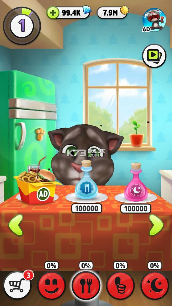 - 养育你专属的汤姆:和他玩游戏,喂他最喜欢的食物,带他上床睡觉。