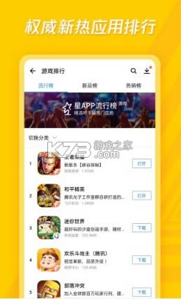 安卓应用宝苹果版应用分类清晰,提供下载数量和各种热门排行榜供您参考