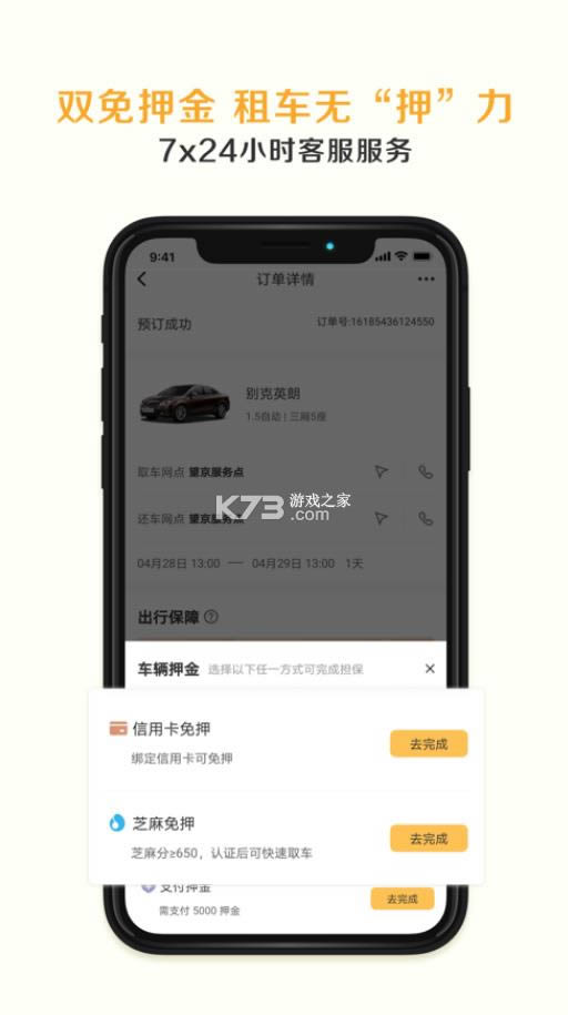 绑卡或芝麻分650分及以上,审核通过后可享受租车“预授权+违章押金”双重免押服务。