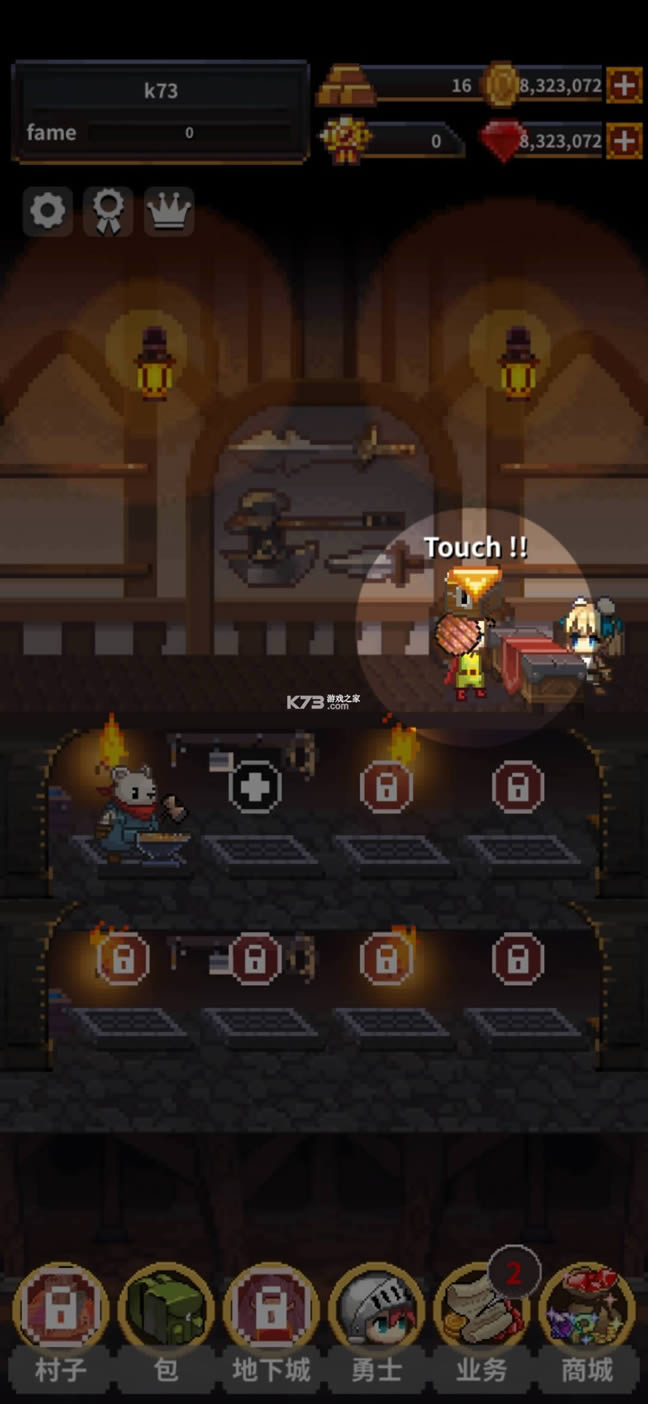 英雄铁匠是一款经典的像素的角色扮演手游,在此你将扮演一名继承了祖传的铁匠铺的少年,因为经营不善面临倒闭,主角无奈只好孤身前去探险,寻找打造传说级别武器的矿石。玩家不仅可以招募众多伙伴与你并肩作战,还可以给它们佩戴装备,提升属性,让队伍的实力更加强大,在其界面设计上采用复古的像素画风设计,画面虽不是特别精致,但无论是色彩搭配,还是角色的塑造都十分细腻,背景音乐优美动听,让玩家可以体验到怀旧的味道。此外,在英雄铁匠这款游戏中玩家除了战胜恶龙之外,还可以打造各种不同级别的剑,比如破损之剑+完美的绿宝石可以合成邪恶剑、吸血鬼獠牙+秘银剑+完美的红宝石合成吸血鬼剑等等,从而让铁匠生意越来越火。