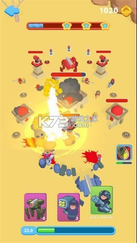 合理安排不同的装备和道具对抗敌人,每一关都有不同实力的敌人,你需要随时对你的装备进行更新很有必要。