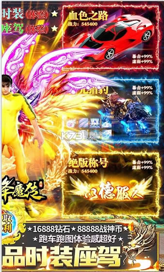 《玛法降魔传-高爆送无限》上线送SVIP20,688万元宝,16888钻石,88888战神币,海量福利等你来拿李小龙时装(体验),血色之路座驾(体验),超前体验极品时装座驾,跑车跑图的体验感不要太好,每天登录还可以领红包盲盒,金额随机,看人品的时候到了,特色30层创世地图,大量boss等你来收割,顶级装备全靠打,不花钱照样满神装!