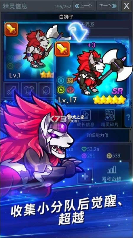 游戏中玩家在这里能够体验到放置性的冒险玩法,里面有许多的神兽和角色玩家都可以进行选择。