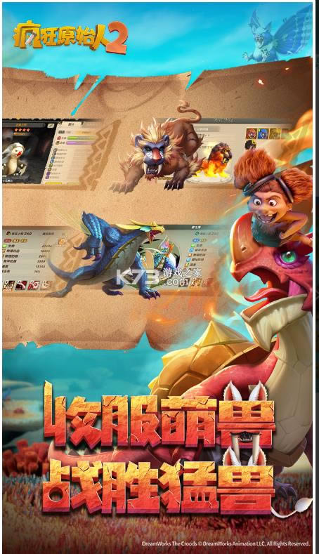 《疯狂原始人2》是一款备受玩家们期待的、获得同名动画电影授权打造的欢乐冒险题材的手游,本游戏会带领玩家们回到史前纪元,开启一段新的冒险故事吧!在本游戏里玩家会扮演部落勇士,在原始大陆里探索和冒险,你能建立属于你的部落,还能挑战史前的那些猛兽哦!