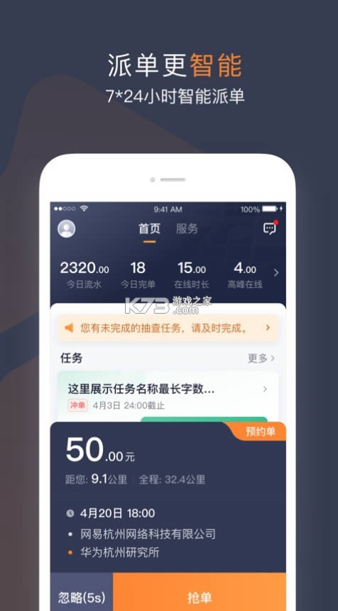 海量订单7*24小时智能派单,不愁没单抢,派单无倾斜,单单都公平。