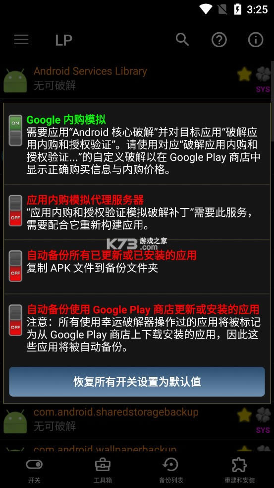 《幸运破解器Lucky Patcher》是一款帮助安卓手机移除广告的工具,它可以去除广告、修改许可凭证、 验证付费应用等等。你可以使用它来进行游戏修改,也可以进行一些付费游戏的免费下载,极为广告快捷,绝对是免费党的福音。