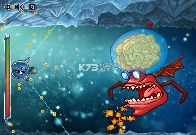 《红色灭绝》这款游戏风格特异,玩家操作一只头上带着双角的蟹,只需用鼠标即可操作上下左右移动打怪,面对海量的其他鱼类,需要升级自己的武器和技能才能更好地面对更强大的敌人!