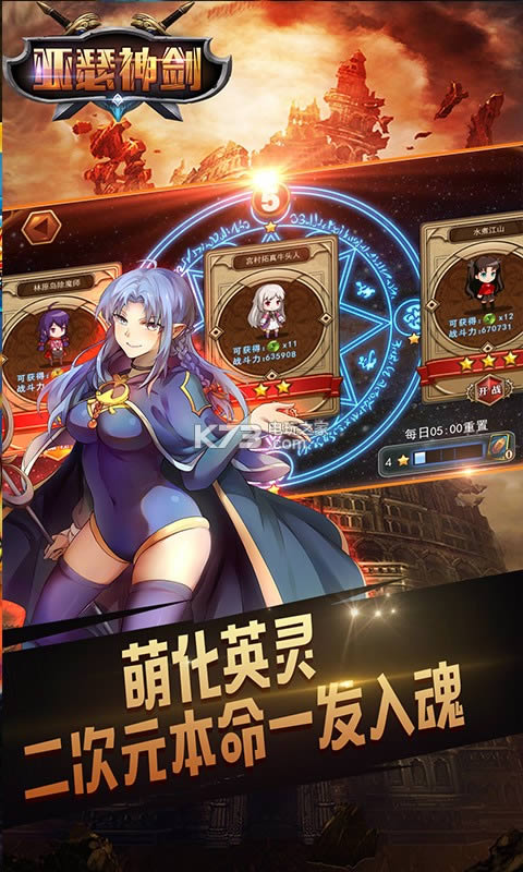 《亚瑟神剑》是一款二次元卡牌移动端网络游戏。游戏采用的是回合行动实时发动技能的半即时战斗模式,既能考验玩家排布阵型、制定策略的能力,