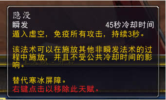 隐没代替冰箱 45秒冷却 3秒无敌 可以移动 并可以再其他非顺发法术的过程中释放
