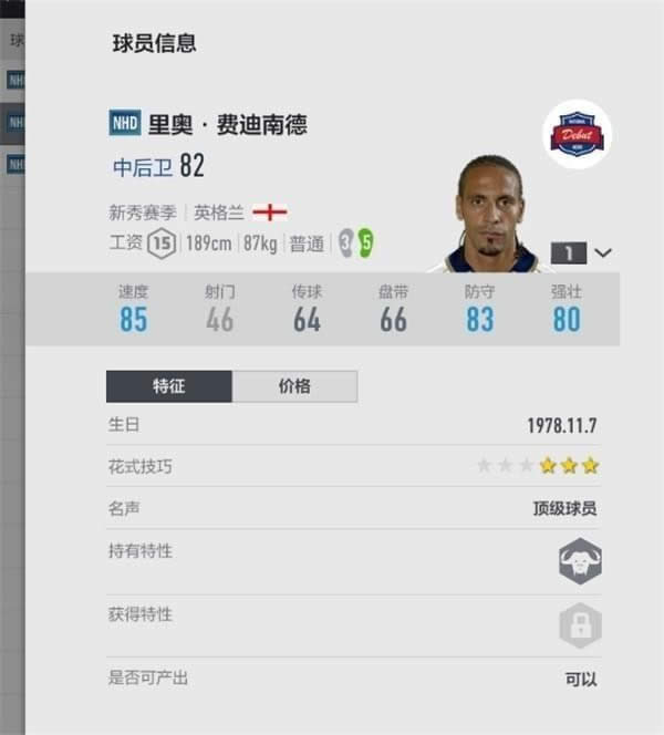NHD 坎贝尔:这张卡价格不低需要26W左右,但是绝对能让你的防守档次上升到一个档次,除非你把压迫调到很高,让别人钻你后门。这张卡的优势在于模型其大是堵墙,但是速度绝对不算慢,UL大罗进攻一个卡位或者伸脚直接挤开,简单而暴力的防守美学。别人在禁区内遛狗,只需要按住A键跟随因为模型大总能破坏他的传球或者射门,非常实用的球员。在发角球时他的头球也是非常强劲总能卡住对面动作,要怎么说模型就加了5点的能力值。