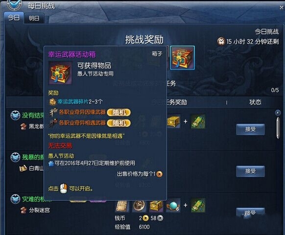 2、玩家完成每日的3个挑战任务后即可获得一个幸运武器活动箱,打开后可获得幸运武器碎片2-3个。
