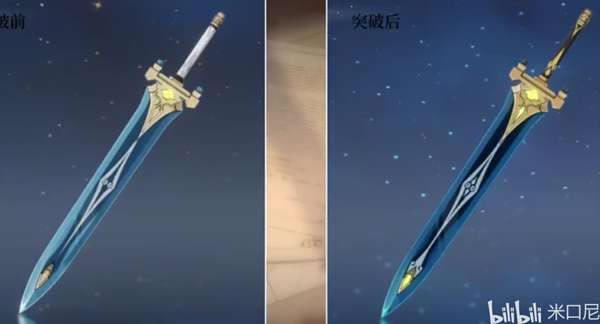 关键词:原神,原神全双手剑,原神二破外观变化,原神武器突破后外观对比