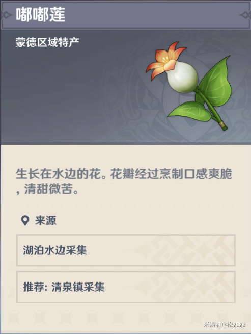 [摘要]原神中嘟嘟莲是凯亚的突破与制作料理所需要的材料,玩家该如何高效的采集嘟嘟莲呢?下面就给大家带来原神嘟嘟莲高效采集路线与刷新时间分享,以供玩家参考。嘟嘟莲两个区域36刷新时间:48小时用途角色突破:凯...