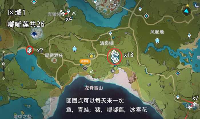 关键词:原神,原神嘟嘟莲,原神嘟嘟莲采集路线,原神嘟嘟莲刷新时间