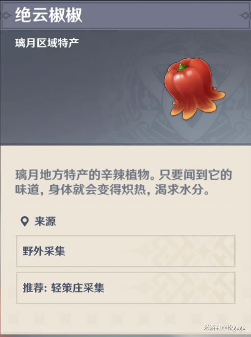 关键词:原神,原神绝云椒椒,原神绝云椒椒采集路线,原神绝云椒椒刷新时间