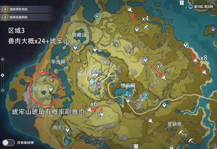 区域3兽肉大概x24+琥牢山