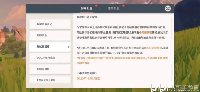 关键词:原神,原神1.2测试版,原神1.2资格取得