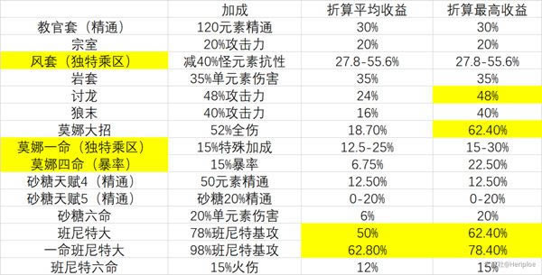 下图是文中所提及增伤收益汇总:
