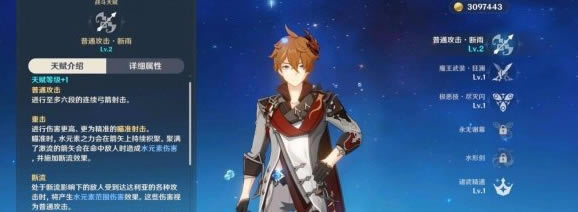 关键词:原神,1.1新角色,达达利亚,天赋技能,详细说明