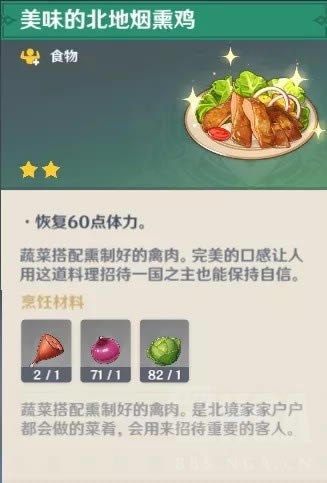 目前该类食物游戏中仅有两种:北地烟熏鸡,山珍热卤面