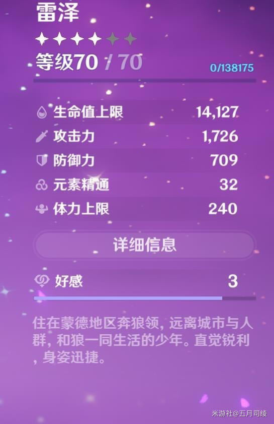 首先我的雷泽攻击力并不高,圣遗物都升级满了,但是属性还是挺一般的,毕竟体力就那点,并没办法刷一套很好的圣遗物(需要巨额体力刷经验书和突破材料= =)