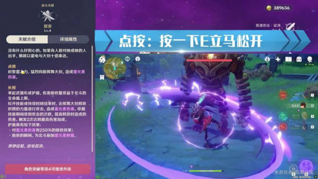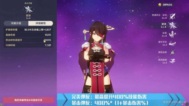 2.战斗天赋:捉浪(即E技能-元素战技-弹反)