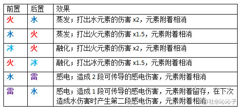 当元素对怪物产生附着时会与之前已存在的元素产生反应。