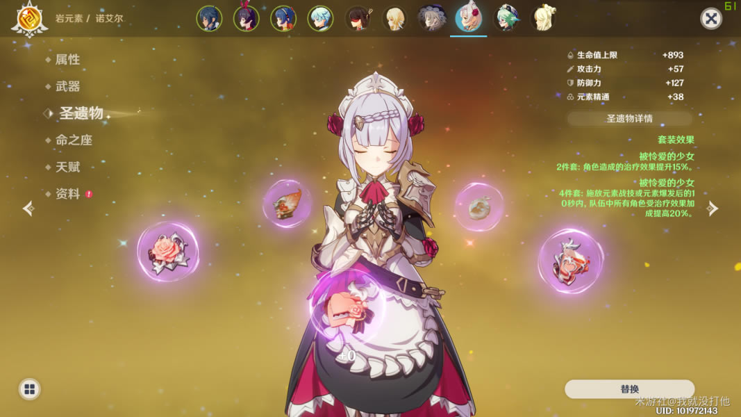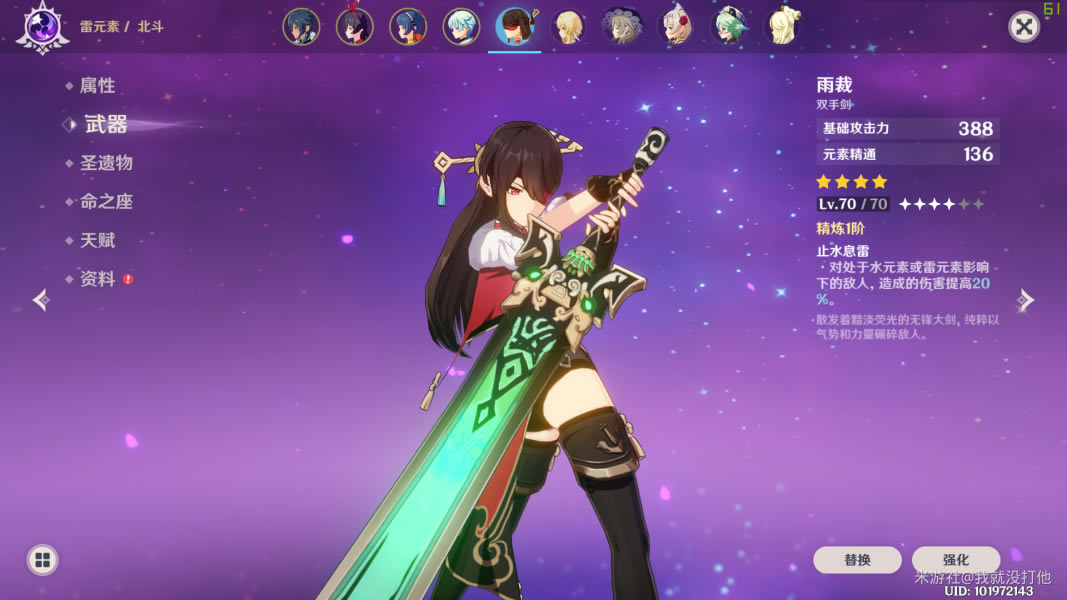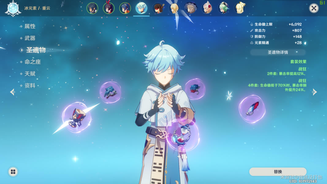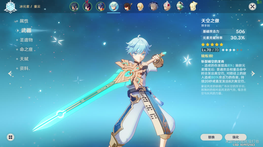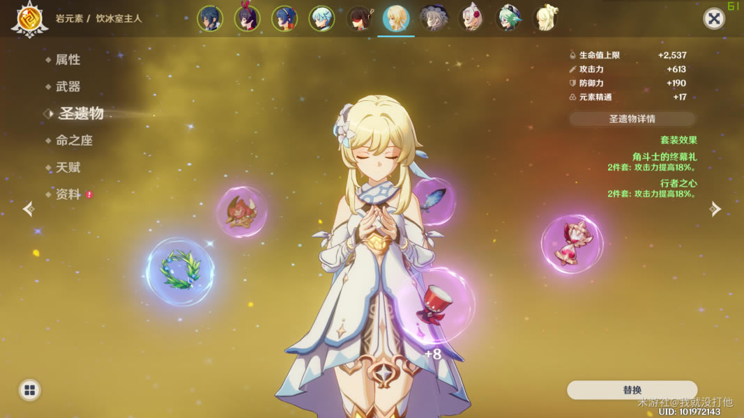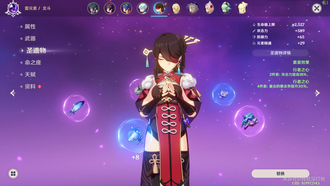 游戏前期中期我加满了一些加攻击力的通用型装备,谁都可以用!很舒服~北斗重云主属性加攻击的圣遗物我都强化满了。岩主的装备均+8。