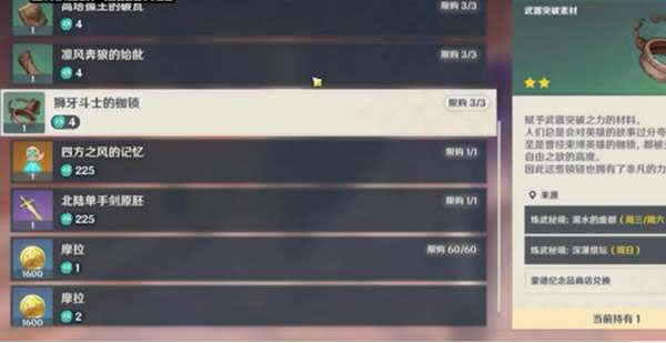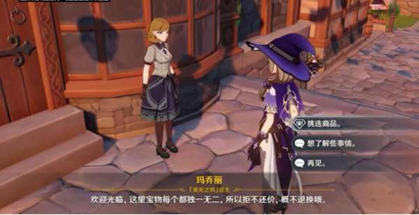 咱们可以在桥玛莉这里,蒙德城的冒险家协会对面,这里可以购买商品。我们角色在突破的时候,你可以在这个地方用这个风之印去购买。
