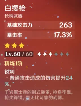 [摘要]开放世界动作冒险RPG游戏原神目前已经在PC端推出开放测试版本,游戏中玩家可以给角色装备不同的武器装备,下面给大家分享本作白樱枪与流月针对比分析基础面板暴击率为47.7%白樱枪60级加17.3%暴击...