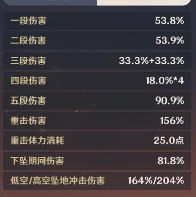 香菱四级普通攻击数值如下: