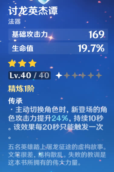 [摘要]原神中除了主C,辅助角色也有着非常重要的作用,那么在开荒阶段,辅助选择什么武器和圣遗物能更轻松呢?下面一起来看看吧。以芭芭拉为例武器 讨龙英杰潭效果如下加成中有向上的箭头在角色周围加成前主C攻击力8...
