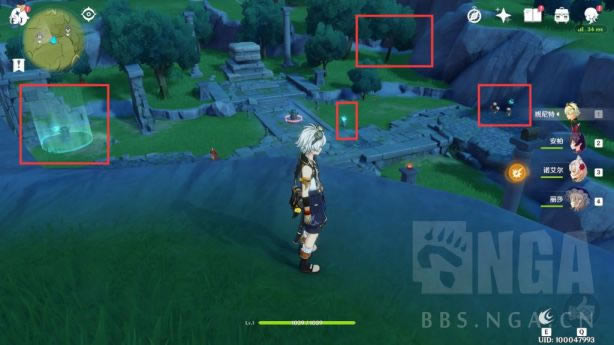 第二个风仙灵在右边的石壁下,解决围住风仙灵的3个丘丘人即可。