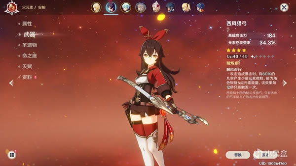 一个弓模角色,安柏即可。我只给安柏升到了25级,目测20级也够用。武器使用统一发的西风烈弓,强化满。