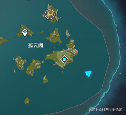 地图位置如下,从山上飞过去即可