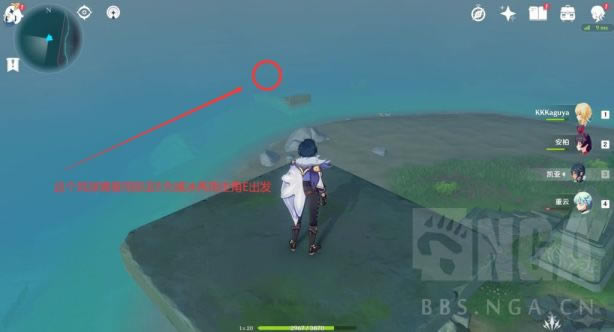 使用凯亚E技能一路铺冰到达小岛