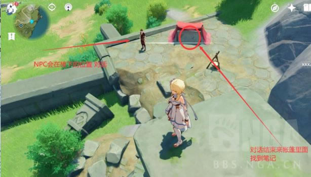 跟NPC对话完去帐篷捡笔记 调时间2.00-5.00