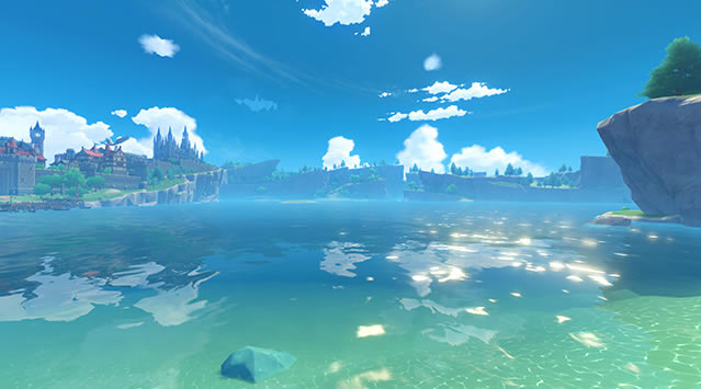 宽广的湖面和粼粼的波光历经千百年不变,水澈见底,入口清冽甘甜。正是这样的水源成就了蒙德美酒的盛名,也让果酒湖成为了蒙德的重要标志之一。