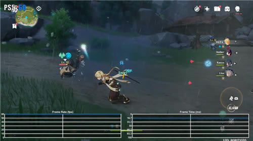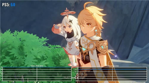 PS5版《原神》和PS4 Pro一样,无法达到标准的4K分辨率(3840x2160)而是准4K(3360x2160),同时测试显示95%的时间内PS5版《原神》能以准4K分辨率稳定60帧运行,基本上达到了4K/60帧的承诺。在某些复杂场景下帧数会跌到56-57帧,人数和特效较多情况下游戏会跌至54帧,尽管如此还是比上一代PS4 Pro的性能有了很大的提升。