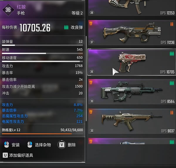 红狼暴击率高但是装弹量少6发,打完6发也就是1s的事所以综合千年雪伤害高