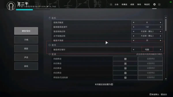 我们要做的就是修改通用栏,将键盘绑定储存更改为电脑