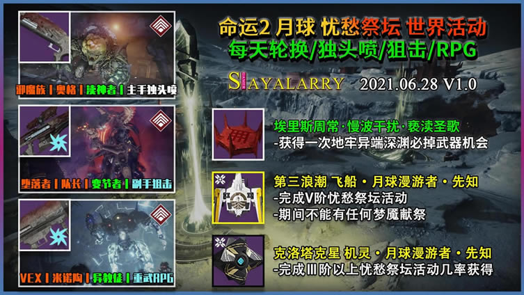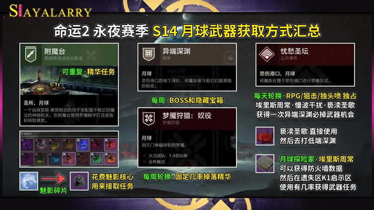 命运2月球武器是游戏中S14赛季推出的一系列复刻武器,永夜赛季如何获取月球复刻武器?下面给大家分享一个命运2永夜赛季月球复刻武器获取指南
