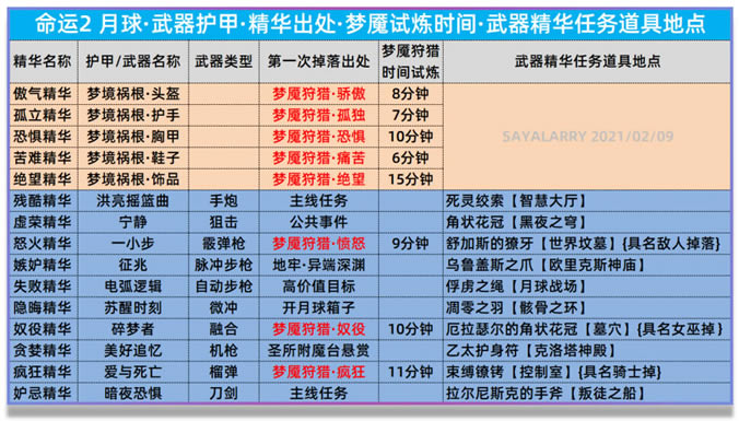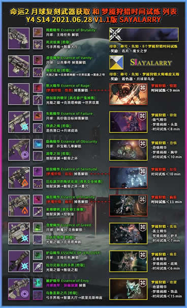 [月球复刻武器丨梦魇狩猎精华掉落丨时间试炼成就丨表格版]