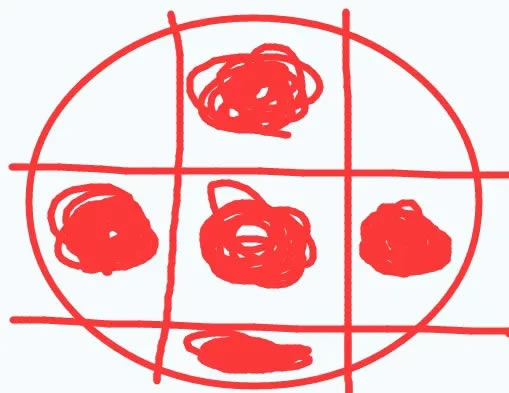 然后这个圆盘的图案会有4个空着的,5个亮着的,我们要做的就是补全这个图案,像下面这张图一样